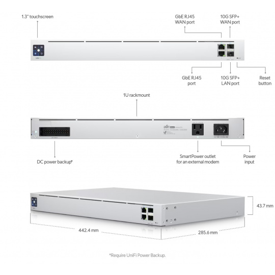 * Redundantní napájení přes UniFi Smart Power RPS +230V