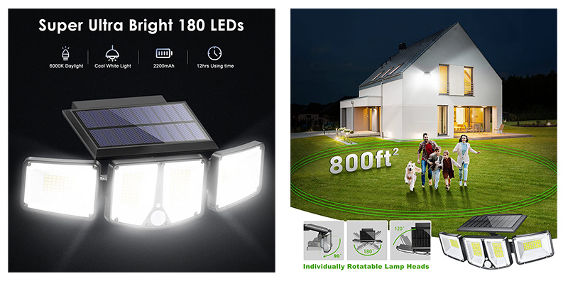 Solární LED světlo se 180 vysoce svítícími LED diodami je ideální k osvětlení venkovních prostor bez možnosti připojení k elektrické síti, jako je např. zahrada, vstup do domu atd. Díky solárnímu napájení je LED světlo zcela soběstačné a nezávislé na napájení z elektrické sítě. Jeho instalace je velice jednoduchá. Jste schopni osvětlit jakékoliv prostory za několik okamžiků a bez další potřeby kabeláže.