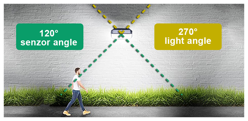 Baterie v solárním světle poskytuje dostatečný výkon pro celonoční osvětlení. Doba svitu záleží na intenzitě světla. Podle vybraného světelného režimu vám LED světlo vydrží svítit 8-12 hodin. Vestavěný pohybový senzor detekuje pohyb v rozmezí od 3 do 5 m v pozorovacím úhlu 120° a zároveň dokáže rozpoznat falešný pohyb (pohyb větví, vítr, atd.)