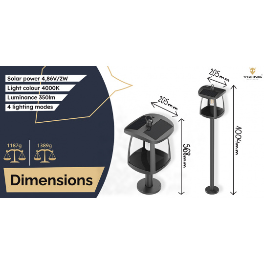 Venkovní solární LED světlo Viking SR10L/350lm /solární napájení / 4000K (denní bílá)/ 4 režimy