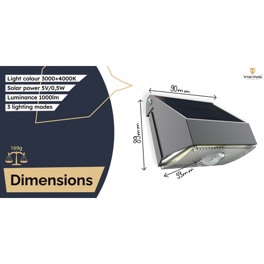 Solární LED světlo Viking SR11 nabízí kompaktní, ale výkonné řešení pro venkovní osvětlení s důrazem na bezpečnost a energetickou úspornost. Díky svítivosti až 1000 lm, dvěma teplotám světla (3000 K + 4000 K) a pohybovému senzoru je vhodné pro osvětlení vstupů, chodeb, garážových vjezdů či zahradních cest.