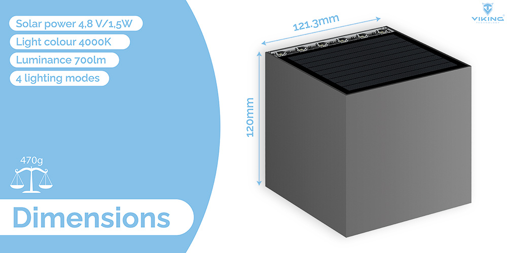 Použitý monokrystalický solární panel disponuje výkonem 4,86 V/1,5 W. Pokud venku panují nevhodné podmínky, světlo Viking SR32 dokáže fungovat až 10 dní.