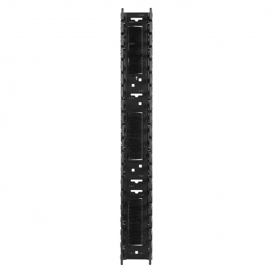 Vertikální organizátor kabelů pro NetShelter SX šířky 750 mm 42U (2 kusy). Svislé kanály mají u každé pozice 1U hladké plastové výstupky, které umožňují uspořádaný vstup a výstup propojovacích kabelů.