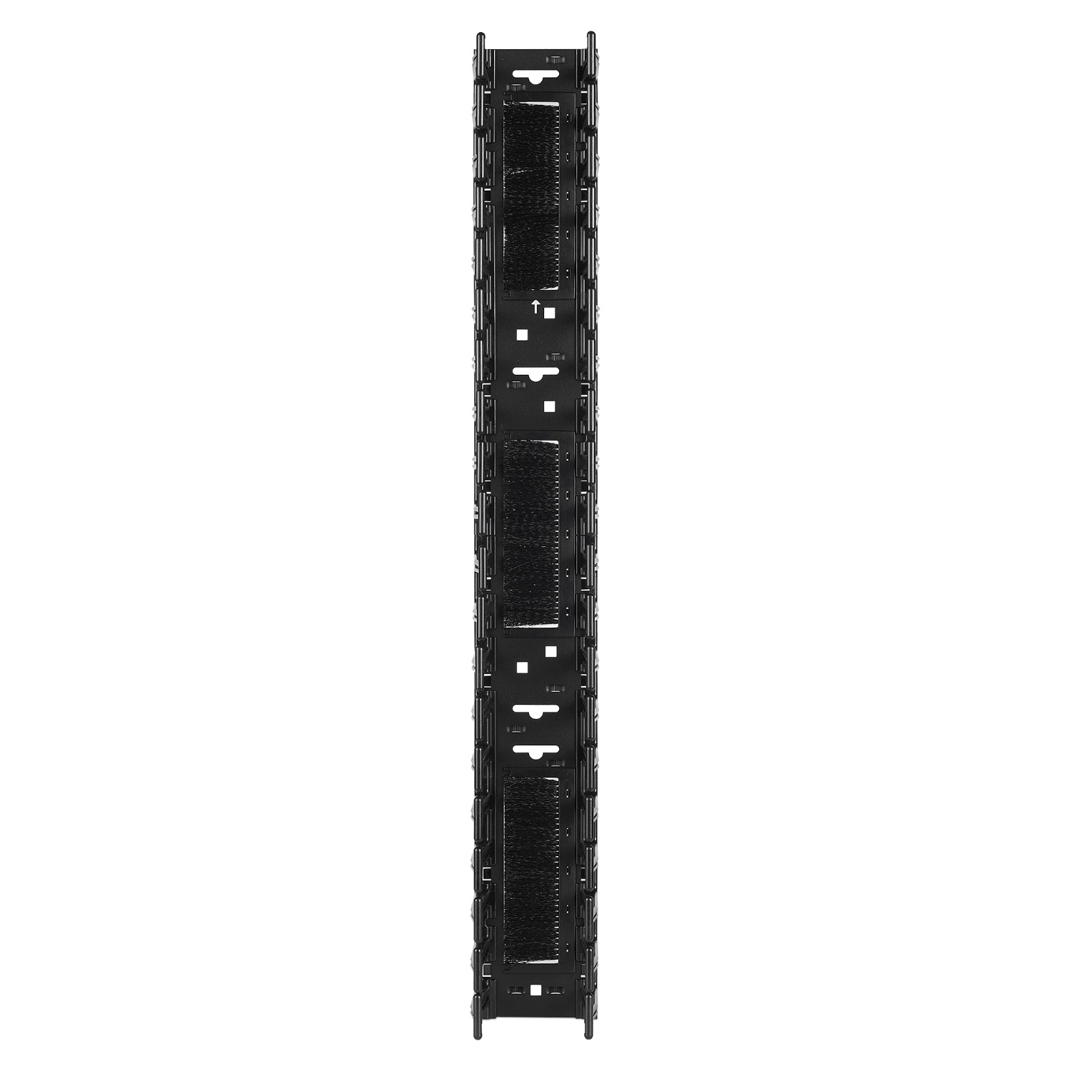 Vertikální organizátor kabelů pro NetShelter SX šířky 750 mm 42U (2 kusy). Svislé kanály mají u každé pozice 1U hladké plastové výstupky, které umožňují uspořádaný vstup a výstup propojovacích kabelů.