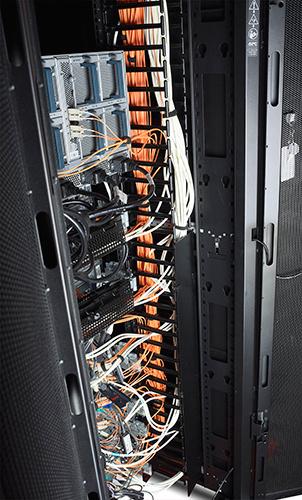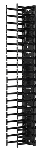 Svislé kanály mají u každé pozice 1U hladké plastové výstupky, které umožňují uspořádaný vstup a výstup propojovacích kabelů.