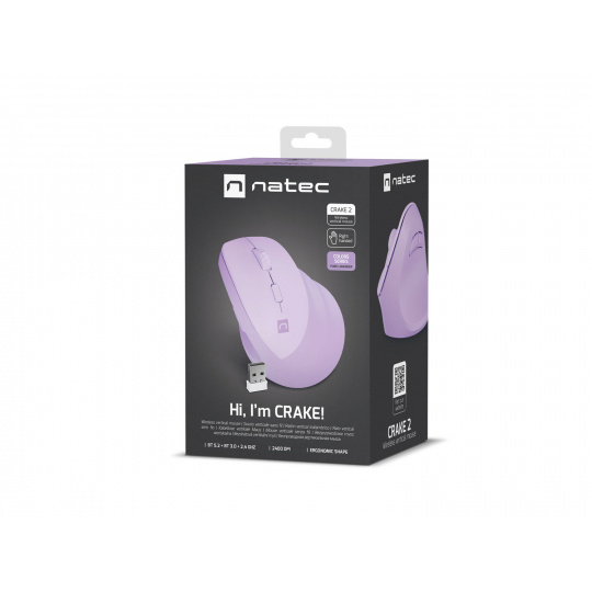 HTMLBezdrátová vertikální myš Natec CRAKE 2/Optická/2 400 DPI/USB+BT/Levan/Vertikální/Optická/Pro pravák