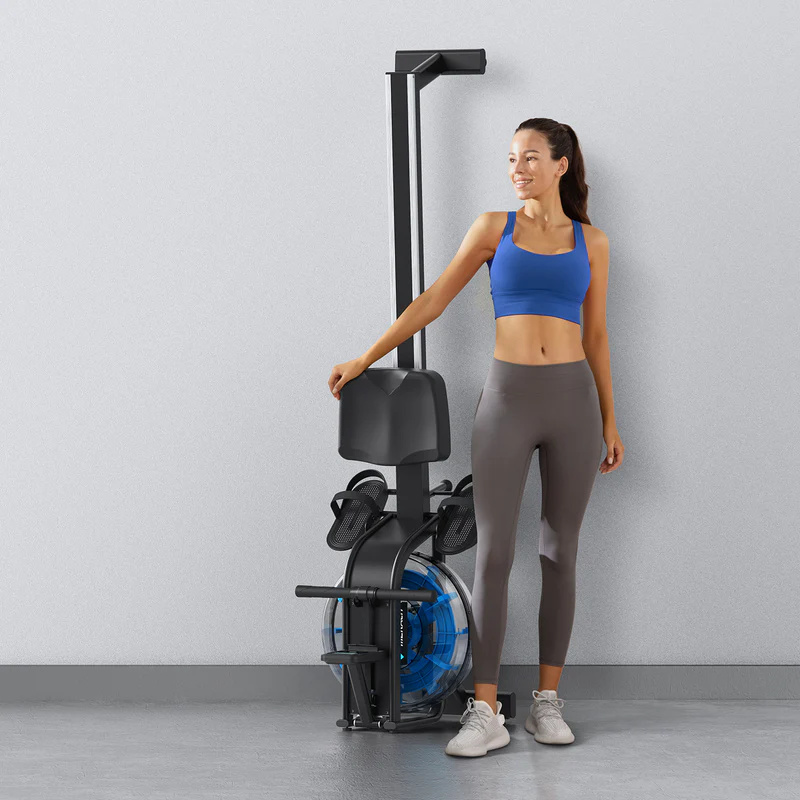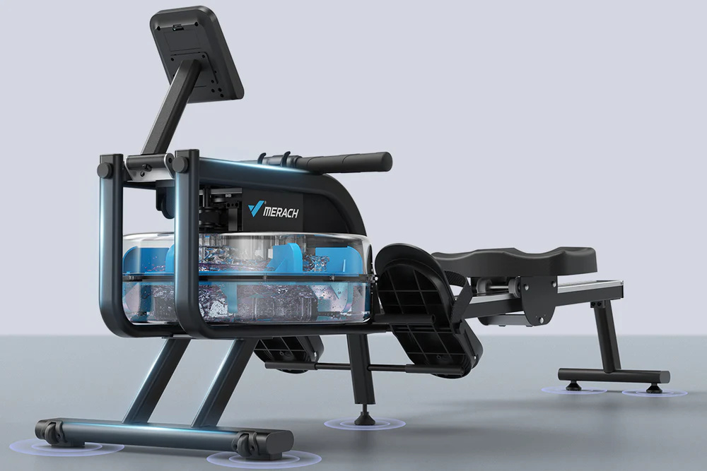 Veslovací trenažér Merach R10B2 s vodním odporem nabízí realistický zážitek z veslování a zapojuje až 86 % svalů těla. Díky nádrži o objemu 15 l, tichému chodu a robustní konstrukci s nosností 160 kg je ideální pro efektivní domácí trénink.