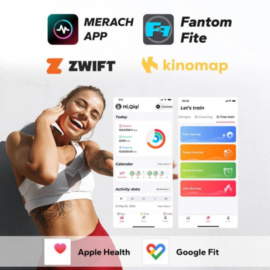 - Kompatibilní aplikace: Merach, Kinomap, Zwift, Apple Health, Google Fit, Fanton Fite