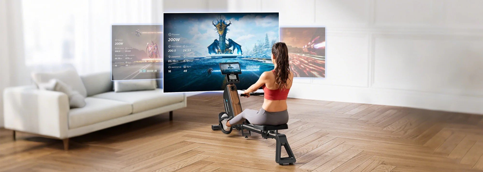 Trenažér je vybaven prodlouženou kolejnicí o délce 130 cm, která poskytuje dostatek prostoru pro přirozený pohyb během veslování. Konstrukce umožňuje plné protažení svalů a pohodlný trénink i pro vyšší uživatele až do výšky 2 m.