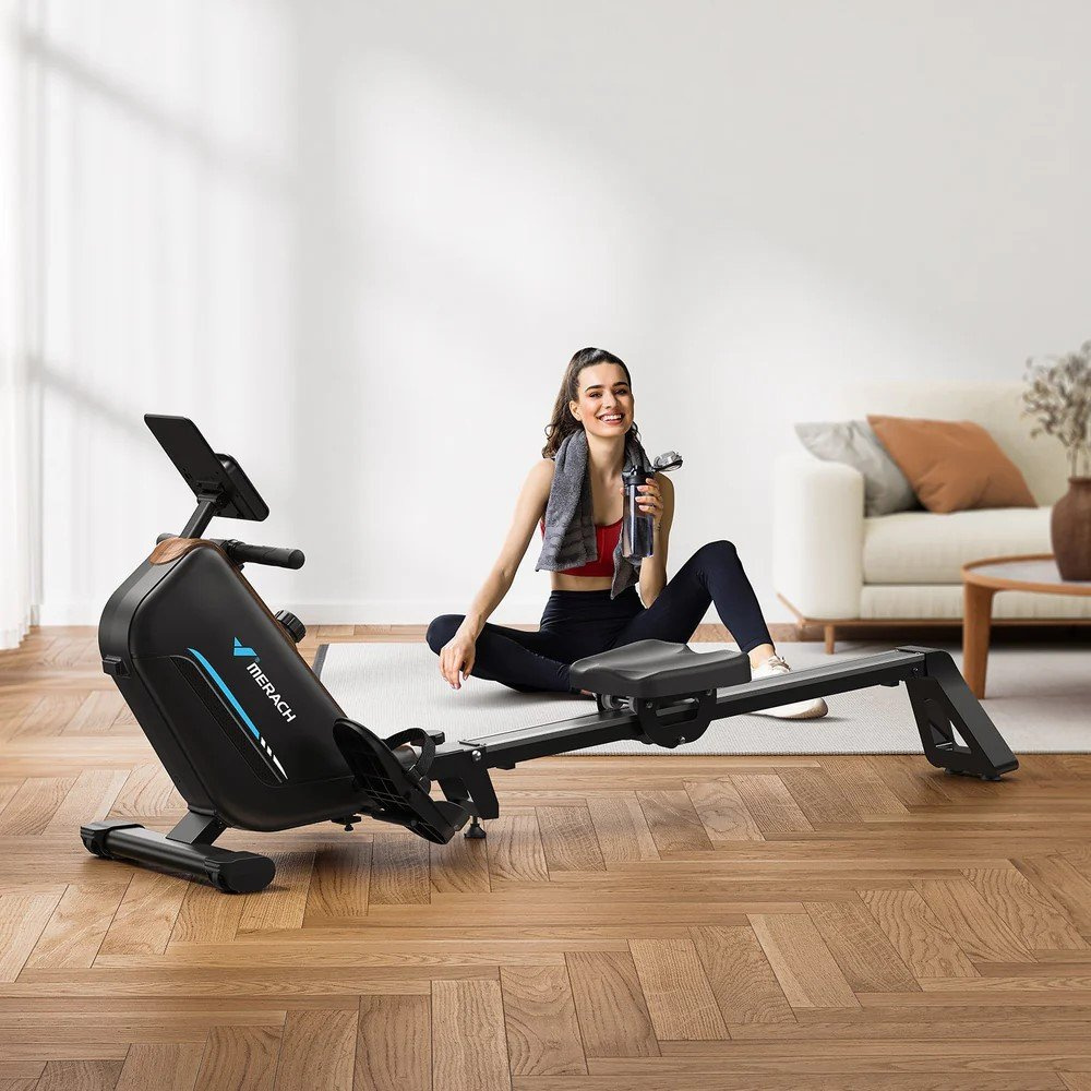 Veslovací trenažér Merach R15 s magnetickým odporem nabízí plynulý a tichý trénink s maximální zátěží až 40 kg. Díky 16 úrovním odporu, robustní konstrukci s nosností 160 kg a připojení přes Bluetooth se skvěle hodí pro efektivní domácí cvičení.
