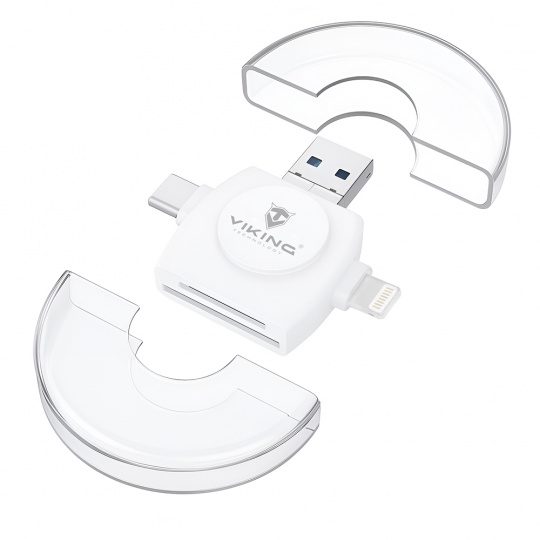 Viking čtečka paměťových karet V4 USB3.0 4v1 je ideálním pomocníkem pro každého, kdo potřebuje rychle a jednoduše přenášet soubory mezi různými zařízeními. Díky čtyřem typům konektorů (Lightning, Micro USB, USB-A 3.0 a USB-C) si skvěle rozumí s mobilními telefony, tablety i počítači. Podporuje OTG, je extrémně kompaktní a navíc ji dostanete v praktickém pouzdře. Ať už potřebujete zálohovat fotky z dovolené nebo přehrát video ve Full HD, tahle čtečka je vždy připravená.