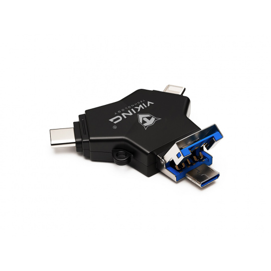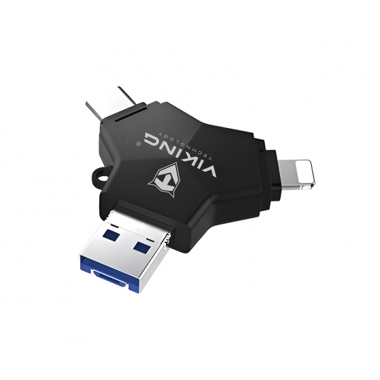 VIKING USB FLASH DISK 3.0 4v1 128GB, S KONCOVKOU APPLE LIGHTNING, USB-C, MICRO USB, USB3.0, černá