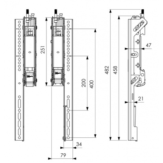 Svislá 3D ramena pro uchycení displeje videostěny na vodorovnou část adaptéru (VESA 400)