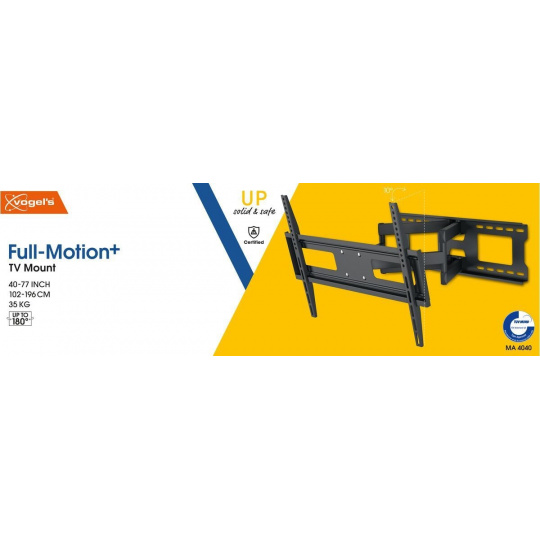 Držáky z řady UP společnosti Vogel jsou nejen praktické, ale také kvalitní. Tento držák byl důkladně testován, aby vydržel co nejdéle. I při trojnásobné maximální hmotnosti televizoru zůstává držák bezpečný. Velmi důležité v rušné domácnosti!