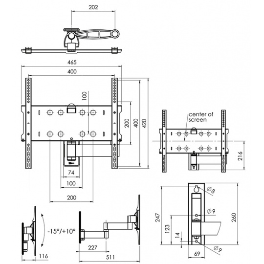 Spolehlivý držák s dvojitým ramenem a 3 klouby
