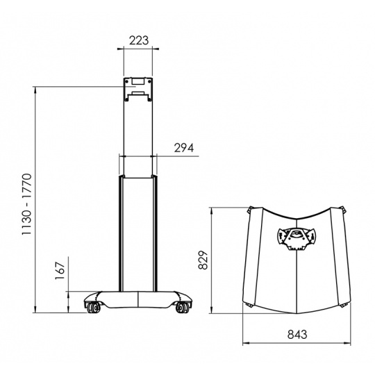• bohaté příslušenství: police, uzamykatelná přihrádka, držák na videokonferenční kameru, repro, držák na player,...