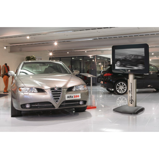 • BRAND YOUR STAND - možnost nahradit přední černou stěnu průsvitným panelem s libovolnou grafikou a podsvícením. Toto zabezpečí ideální integraci do libovolného interiéru a maximální komunikaci nejen prostřednictvím displeje, ale i stojanu samotného
