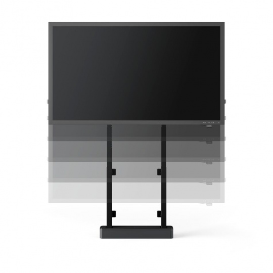 Podlahový stojan RISE 2005 s motorizovaným zdvihem a uchycením ke stěně je určen pro interaktivní ploché displeje s úhlopříčkou až 98" (max. 140 kg).