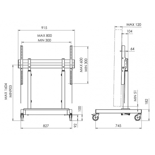 Vogel's RISE 3205 pojízdný podlahový lift 86", dvojitý, 903-1604 mm