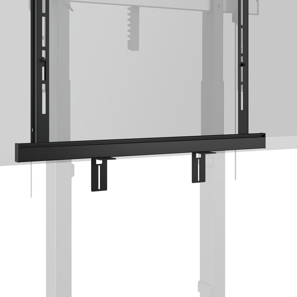 Pomocí držáku na soundbar RISE A121 můžete k motorovému liftu na displeje Vogel's RISE připojit libovolný soundbar. Lišty držáku jsou nastavitelné na šířku v rozmezí 5-85 cm. Výšku a hloubku lze nastavit o 10-14 cm v závislosti na typu soundbaru, takže toto příslušenství je vhodné téměř pro každou značku. Soundbar se potom při pohybu liftu zvedá a klesá společně s displejem.