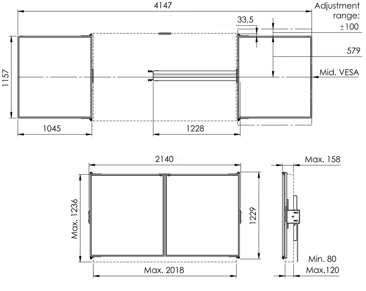 Tabule Vogel's jsou k dispozici pro tři nejběžnější velikosti (interaktivních) obrazovek 65, 75“ a 86“. Díky výškovému a hloubkovému nastavení systému lze tabule bezproblémově přizpůsobit jakémukoli typu (interaktivní) obrazovky.