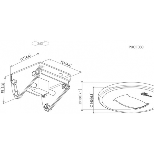 Stropní úchyt pro rovné stropy s otáčenímrotace o 360° pro správné nasměrování displeje (není určena pro stálé, opakující se natáčení)rotace je zamykatelná v libovolné pozicipodhledový krytIndikátor pozice pro laserové zaměřováníurčen pro tyče PUC25xx