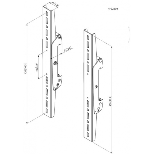 PFS 3304Connect-it LargeSvislá ramena pro uchycení monitoru na vodorovnou část adaptéru (VESA 420)*integrovaný krokový náklon*na vodorovnou část adaptéru se jednoduše naklapne*bezpečnosní západky pro pevné uchycení*možnost doplnit zámkem*výška 450mm*max. uchycení 420mmSpecifikace výrobku:*nosnost 80 kg*uchycení svisle 420 mm*výška 450 mm*