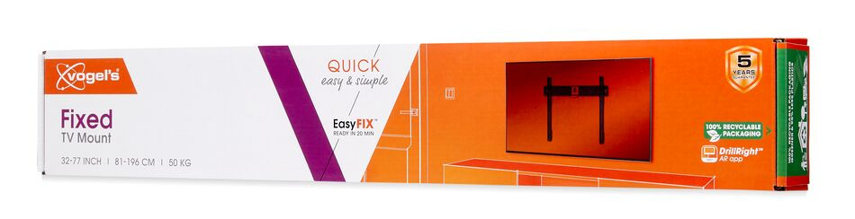 Hledáte praktický nástěnný držák pro snadné a rychlé upevnění televizoru na stěnu? Sedíte vždy přímo před televizorem, takže se obrazovka nemusí otáčet ani naklánět? Pokud ano, je pro vás tento TV držák z řady QUICK Fixed ideální volbou. Je vhodný pro televizory s úhlopříčkou od 32 do 77 palců a hmotností do 50 kg. Mezi televizorem a stěnou je vzdálenost pouhých 2,2 cm.