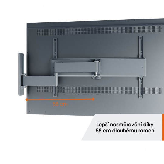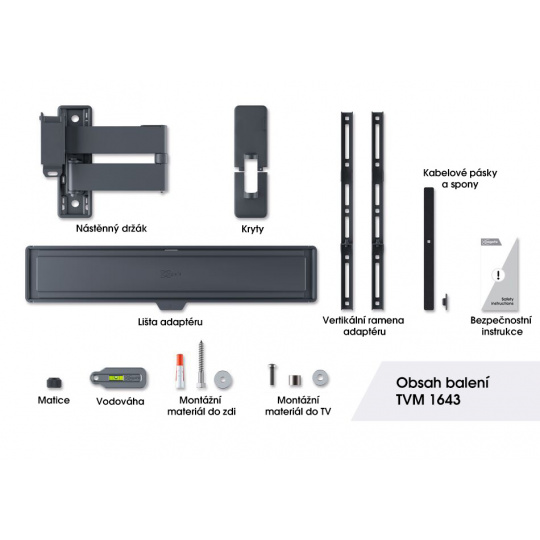 Kvalitní otočné rameno pro připevnění vaší obrazovky s kloubem pro univerzální flexibilitu. TVM 1643 je vhodný pro všechny obrazovky s váhou do 35kg, podporuje VESA standardy uchycení, a disponuje možností natočení, naklápění, i možností korekce roviny.