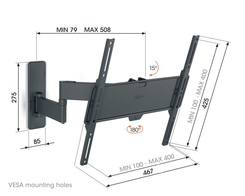 Otočte TV až o 180° díky 60 cm dlouhému rameni