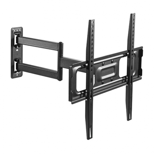 Výsuvný nástěnný držák LPA69-443 je určen pro instalaci TV s plochou obrazovkou s úhlopříčkami od 32“ do 55“. Jeho největší přednostní je robustní výsuvná konstrukce, díky níž unese TV o hmotnosti až 35 kg a zároveň umožňuje nastavit vzdálenost TV od stěny v rozsahu 82 mm až 485 mm, samozřejmostí je pak také velký rozsah polohování. Držák umožňuje snadné naklápění TV v rozsahu +5°~-15°, natočení do stran v rozsahu +90°~-90° a rotaci v rozsahu +3°~-3°, což maximalizuje flexibilitu sledování z libovolného místa v místnosti. Integrovaná svorka na kabely udržuje kabely uspořádané a chráněné.