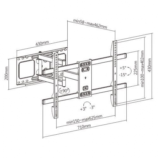 • Výsuvná konstrukce s možností stranového natočení v rozsahu +60°~-60°