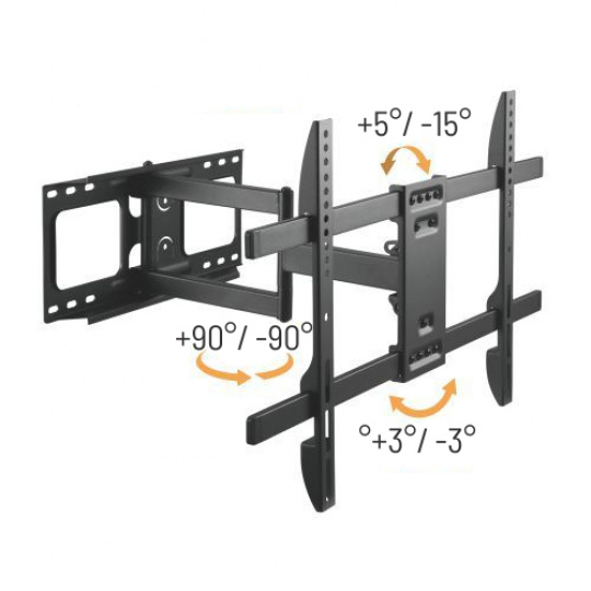Výsuvný nástěnný držák LPA69-463D je určen pro instalaci TV s plochou obrazovkou s úhlopříčkami od 32“ do 70“. Jeho největší přednostní je robustní výsuvná konstrukce, díky níž unese TV o hmotnosti až 45 kg a zároveň umožňuje nastavit vzdálenost TV od stěny v rozsahu 58 mm až 462 mm, samozřejmostí je pak také velký rozsah polohování. Držák umožňuje snadné naklápění TV v rozsahu +5°~-15°, natočení do stran v rozsahu +90°~-90° a rotaci v rozsahu +3°~-3°, což maximalizuje flexibilitu sledování z libovolného místa v místnosti. Integrovaná svorka na kabely udržuje kabely uspořádané a chráněné.