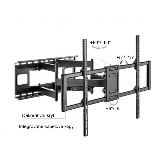 • Výsuvná konstrukce s možností stranového natočení v rozsahu +60°~-60°