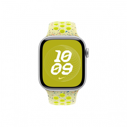 Tenhle sportovní řemínek Nike má vylisované otvory pro větší vzdušnost, je odolný, pevný a přitom krásně poddajný. Obsahuje barevné vločky vytvářející náhodné vzory, takže každý řemínek je originál. Jeho hladký, hutný materiál se elegantně ovine kolem zápěstí a příjemně sedí. A nově se zapíná na hliníkový kolíček s matným povrchem.