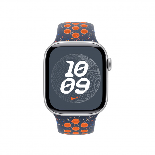 Apple 42mm sportovní řemínek Nike – M/L Tenhle sportovní řemínek Nike má vylisované otvory pro větší vzdušnost, je odolný, pevný a přitom krásně poddajný. Obsahuje barevné vločky vytvářející náhodné vzory, takže každý řemínek je originál. Jeho hladký, hutný materiál se elegantně ovine kolem zápěstí a příjemně sedí. A nově se zapíná na hliníkový kolíček s matným povrchem. Řemínek obsahuje minimálně 30 % recyklovaného fluoroelastomeru, přičemž obsah recyklovaného fluoroelastomeru v každé vločce je minimálně 66 %. V krabici Sportovní řemínek Apple Watch Nike Technické specifikace Materiál: Hliník, Minimálně 30 % recyklovaného fluoroelastomeru Barva: Blue Flame Nike Velikost řemínku: 150 - 200 mm Kompatibilita - Modely Apple Watch * 38 mm * 40 mm * 41 mm * 42 mm