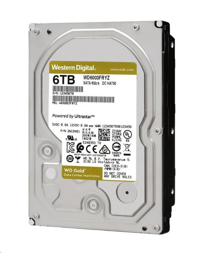 WD GOLD WD6004FRYZ 6TB SATA/ 6Gb/s 256MB cache 7200 ot., CMR, Enterprise