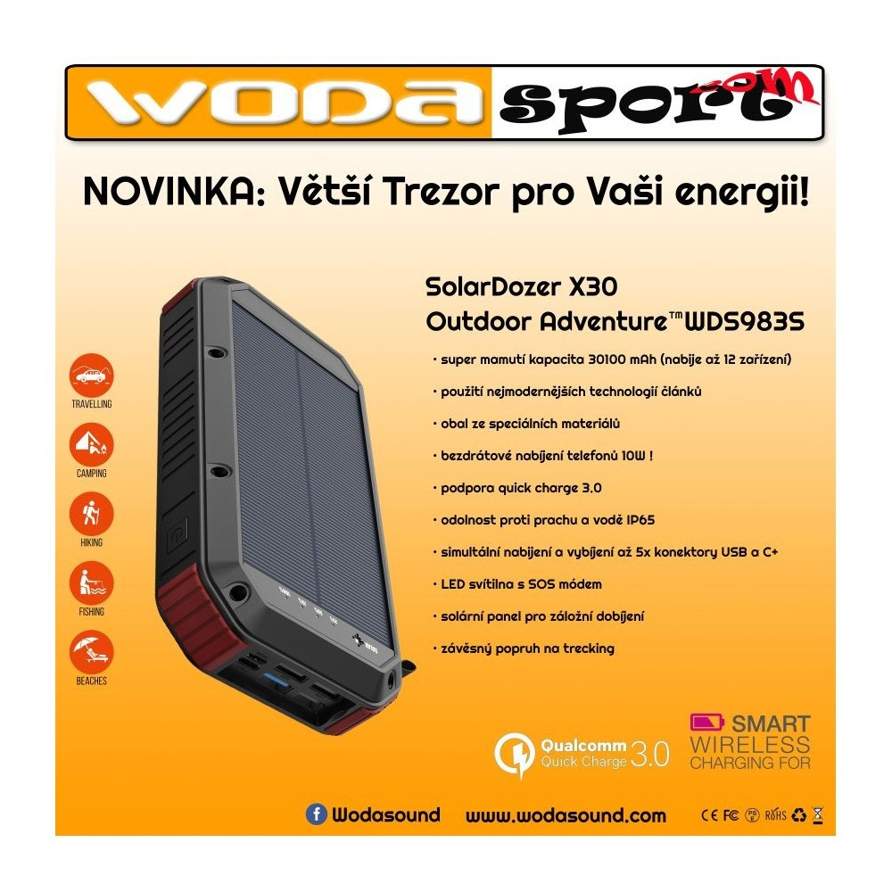 Wodasport - X30 - Solární powerbanka Wodasport® SolarDozer X30, Outdoor Adventure™ 30100 mAh 7v1