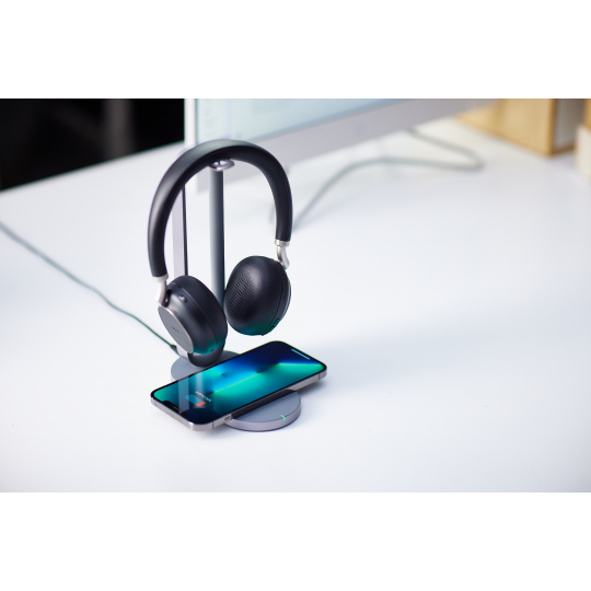 Multifunkční bezdrátový nabíjecí stojan BHC76 dokáže nejen nabíjet náhlavní soupravu Bluetooth BH72/BH76, ale funguje také pro jakýkoli mobilní telefon podporující Qi a osobní zařízení, jako je TWS. Nabíjecí stojánek může fungovat také jako stojánek pro náhlavní soupravu, když se náhlavní souprava nenabíjí. Umístěte náhlavní soupravu na stojan a získejte elegantní pracovní plochu.