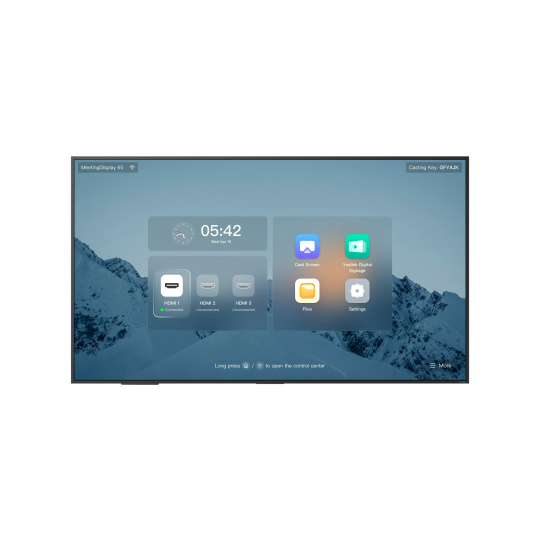 MeetingDisplay je navržen speciálně pro systém Yealink MTR a lze jej spárovat s lištou MTR, UVC kamerou a MCore, čímž poskytuje kompletní řešení Yealink Meeting Solution. MeetingDisplay je k dispozici ve velikostech 65", 75" a 86", což splňuje potřeby malých, středních i velkých zasedacích místností. Zařízení MeetingDisplay a MTR lze nasadit, spravovat a integrovat jednotným způsobem. Tato zařízení systému MTR můžete namontovat na MeetingDisplay bez vrtání nebo poškození stěn. Proces instalace bude také jednoduchý a pohodlný díky naší unikátně navržené struktuře. Řešení pro setkání, vedené systémem MTR, lze navíc centrálně spravovat prostřednictvím YMCS/YDMP. Toto řešení umožňuje zařízením MeetingDisplay a MTR pracovat synchronizovaně, včetně režimu spánku/probuzení, zapnutí/vypnutí a režimu digitálního signage.