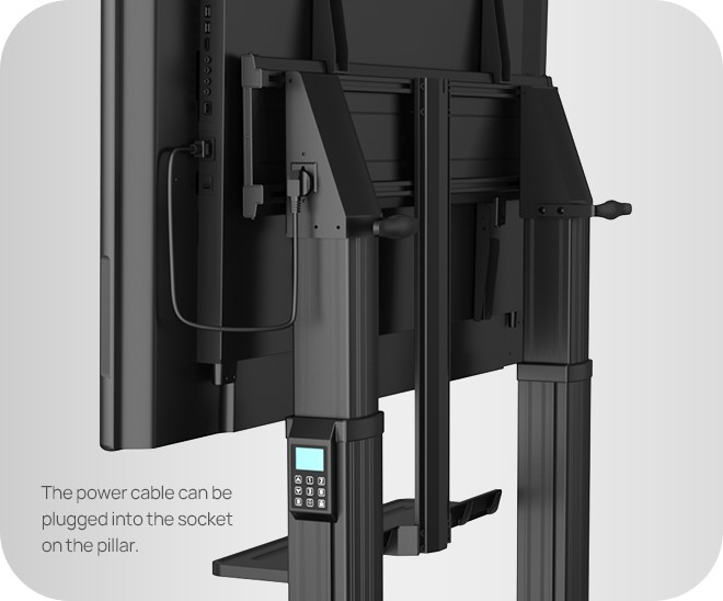 MB-FS-Lift je kompatibilní se zobrazovacími zařízeními Yealink a je dodáván s praktickým úložným prostorem. Podporuje elektrické nastavení výšky s rozsahem až 500 mm a je vybaven funkcí paměti výšky, která uživatelům umožňuje snadno přepínat mezi různými výškami. Flexibilní nastavení výšky Podlahový stojan podporuje elektrické nastavení výšky a funkci paměti výšky s dosahem zdvihu až 500 mm, což flexibilně splňuje požadavky na výšku pro psaní a komunikaci. Integrovaný napájecí zdroj Sloupek podlahového stojanu je vybaven univerzální zásuvkou, která umožňuje přímé napájení konferenčního displeje bez nutnosti dalších zásuvek nebo prodlužovacích kabelů. Efektivní mobilita a stabilita Podlahový stojan je vybaven velkými otočnými kolečky, která zajišťují flexibilní pohyb v různých prostředích a usnadňují rychlé nastavení polohy zařízení. Klíčové parametry: Rozměry stojanu (D/Š/V): 1100 x 600 x (1100~1600) mm Rozměry balení stojanu: 1210 x 705 x 225 mm Hmotnost stojanu: 40 kg Hmotnost netto stojanu: 34 kg Rozměry podnosu: 700 * 200 mm Hmotnost podnosu: 2,8 kg Spotřeba energie v pohotovostním režimu (zapojeno do zásuvky, zatížení 85 kg, bez zvedání): 22 W Provozní spotřeba energie (zapojeno do zásuvky, zatížení 85 kg, zvedání): 880~990 W Spotřeba energie bez zátěže (zapojeno do zásuvky, bez zátěže, zvedání): 220~330 W Rychlost zdvihu: 15 mm/s Výška zdvihu: 500 mm Funkce zvedacího panelu:Zobrazení výšky zdvihu, nastavení výšky, inicializace, přepínač světelných efektů, tlačítko paměti, tlačítko nastavení, dětský zámek Vesa: 400 x 400mm - 1000 x 600mm Maximální nosnost: Maximální nosnost stojanu: 87 kg Maximální nosnost tácku: 10 kg