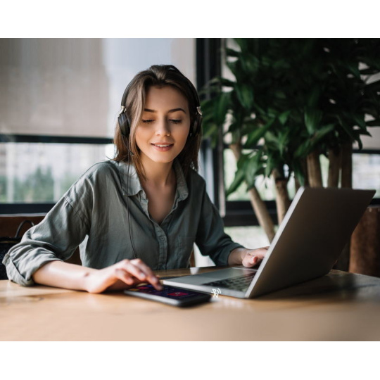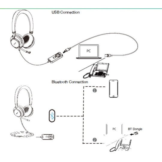 Podporovaný režim duálního připojení USB-A a Bluetooth, bezdrátový dosah Bluetooth může být až 10 m. Uživatelé mohou připojit a spravovat dva druhy hovorových zařízení současně a bezproblémově přepínat mezi PC a mobilním zařízením a zlepší efektivitu zpracování hovorů.