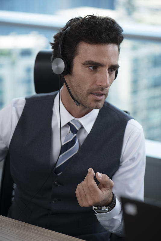 Tato náhlavní souprava je vyrobena pro hovory a je vybavena širokopásmovou HD zvukovou technologií, které zajišťuje bohatší a jasnější konverzace. Mikrofon s potlačením šumu umožňuje snížení vnějšího hluku, takže se posluchači se mohou více soustředit na požadovaný zvuk hovoru.