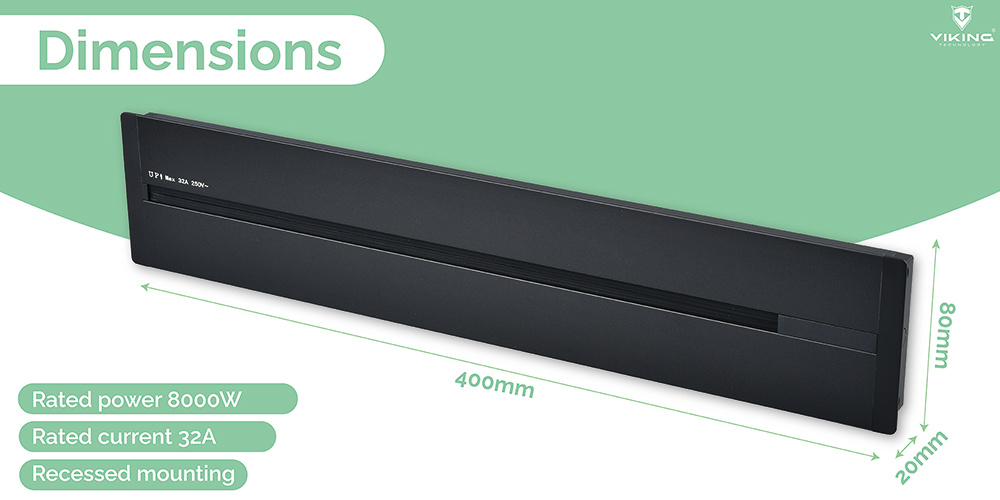 Zásuvková lišta - zápustná montáž • kompaktní rozměry 8 x 2 x 40 cm • připojení až 5 zásuvkových modulů • napájení 230V, 50Hz • ideální pro domácí i kancelářské využití • jmenovitý proud 32 A • robustní hliníková slitina • jmenovitý výkon 8000 W • ochrana IP20 • izolační napětí 500V • snadná manipulace a individuální uspořádání modulů v zásuvkové liště