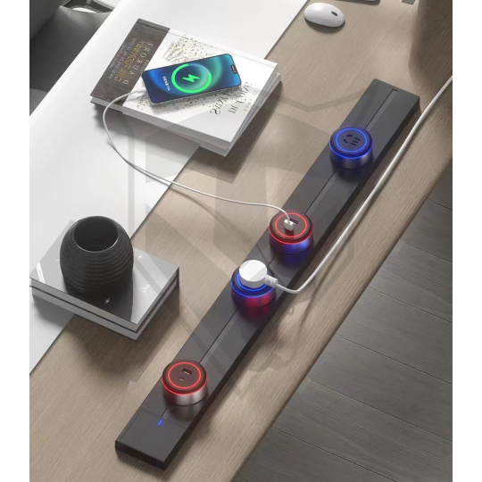 •Bezpečný a robustní design: Zásuvková lišta je vyrobena z odolné hliníkové slitiny, která zajišťuje dlouhou životnost a ochranu proti přehřátí. Těsnicí pásek chrání proti prachu a náhodnému dotyku, což snižuje možnost úrazu elektrickým proudem.