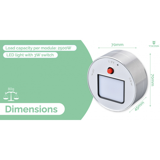 Zásuvkový modul Viking A10 je vybaven LED světlem se spínačem s výkonem 3W a je k dispozici ve dvou barevných variantách.