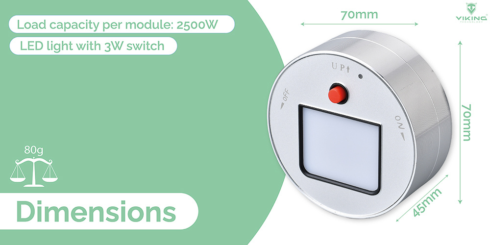 Zásuvkový modul Viking A10 je vybaven LED světlem se spínačem s výkonem 3W a je k dispozici ve dvou barevných variantách.