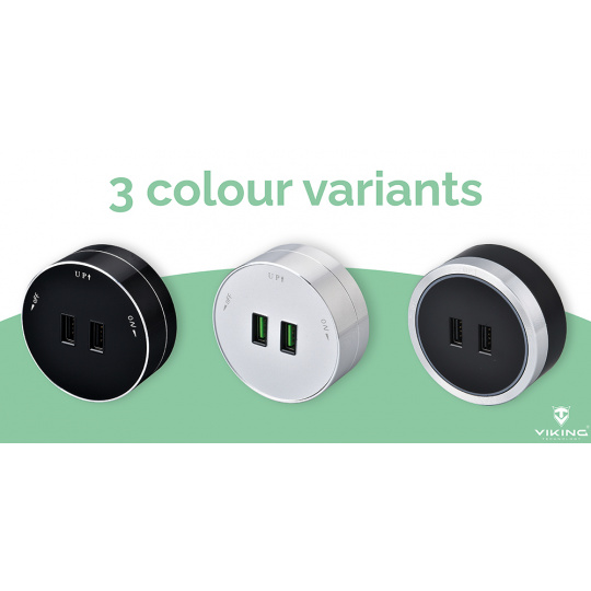 Zásuvkový modul Viking A50S je vybaven USB-A (2x) výstupy 5V/2,4A.