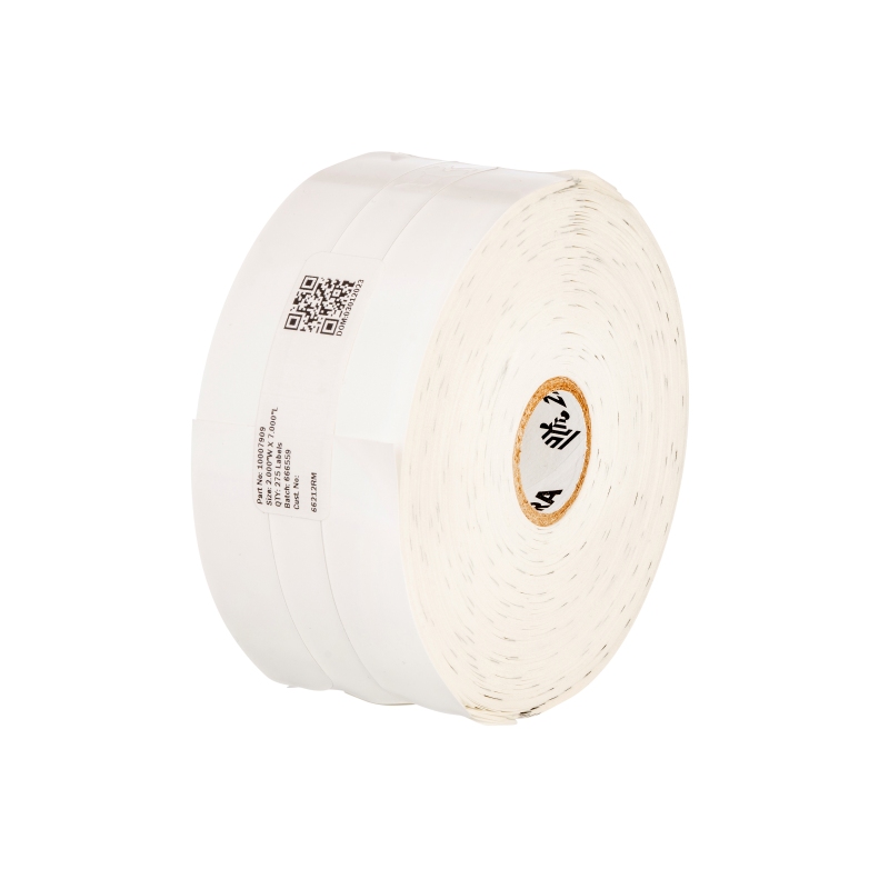 Zebra Wristband, Synthetic, 2x7in (50.8x177.8mm); DT, Lam 65843RM / 66213RM, Coated, 1in (25.4mm) core, 275/roll, 6/box. Black mar